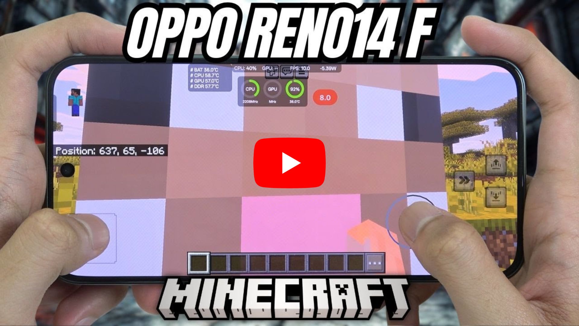 Video Oppo Reno14 F 5G test game Minecraft | Snapdragon 6 Gen 1: